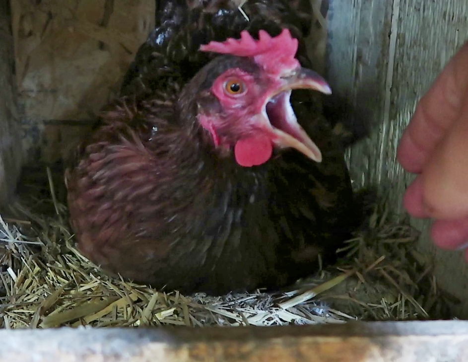 - Cranky. If you try to pet a broody hen or check for eggs, you’ll probably get a loud screech, and maybe a peck on the hand. They don’t want anyone messing with their future children!